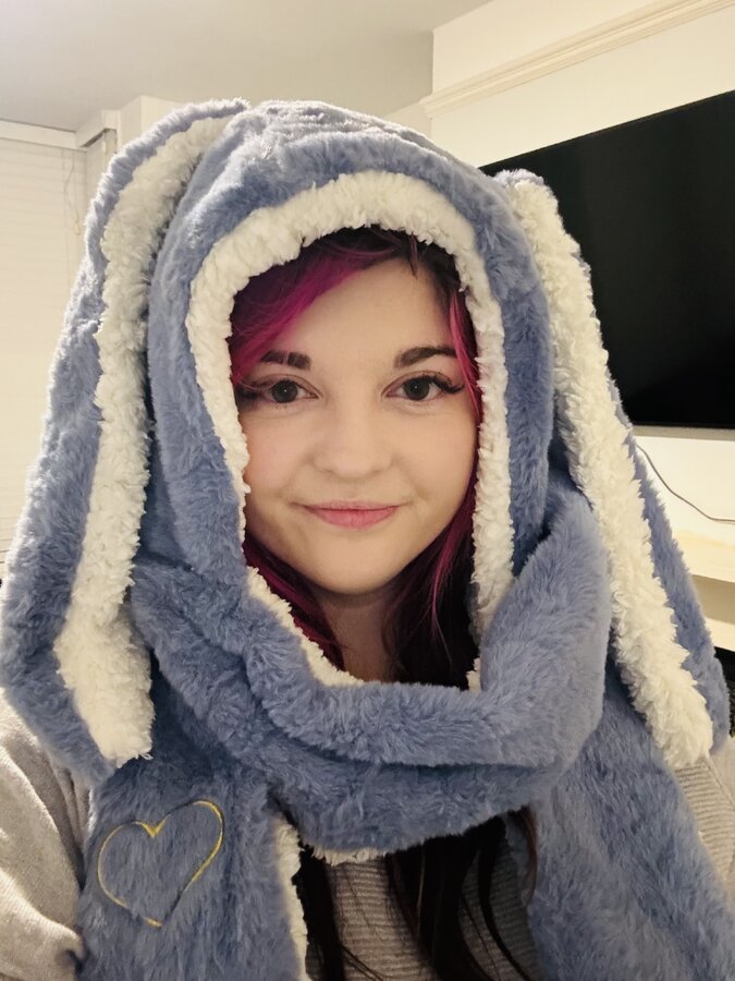 Ready for those chilly months with my bunny headscarf.