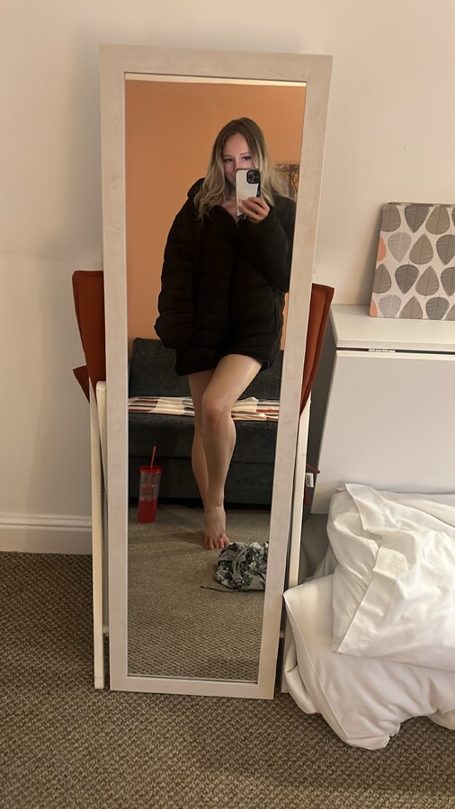 Your naughty, flexible little blondie excited to tease your cock. 💦